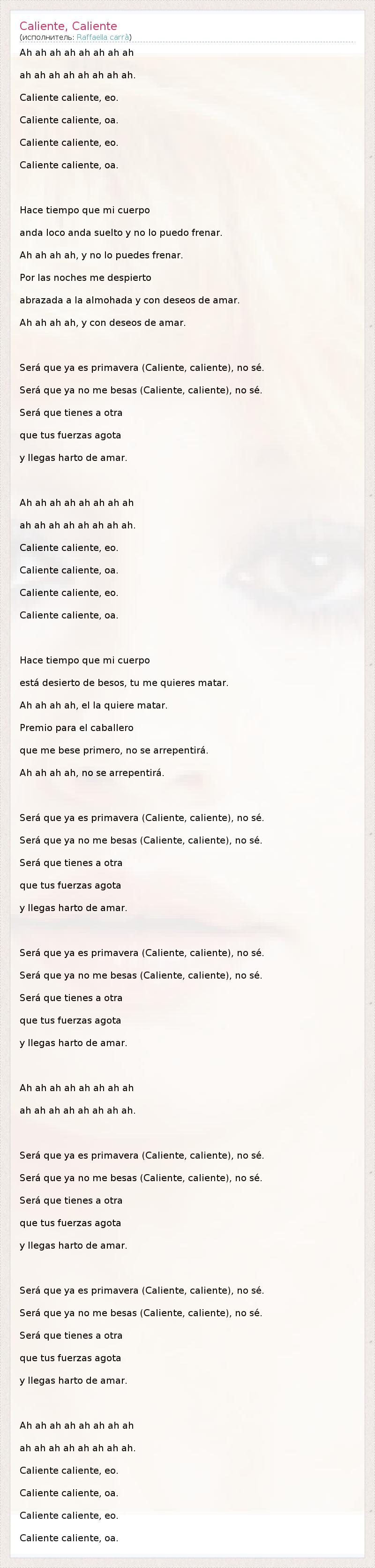 А как ты думаешь, о чем песня "Caliente, Caliente" ?