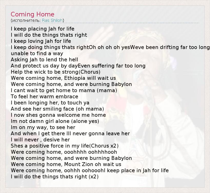 Were coming home, oohhh oohooohI keep place in Jah for life