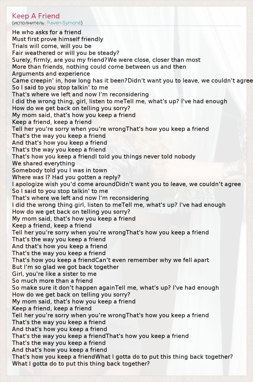 А как ты думаешь, о чем песня "Keep A Friend" ?