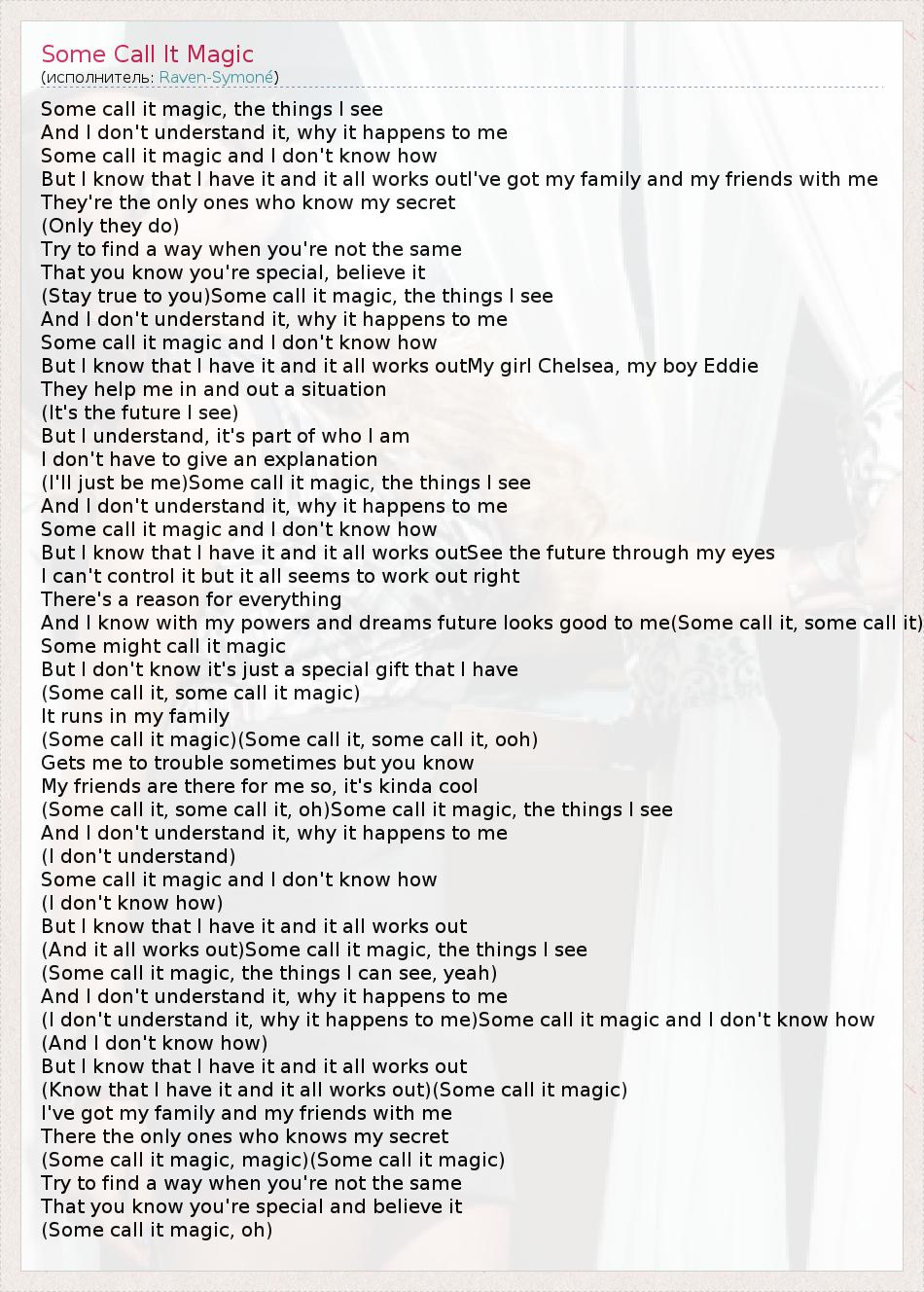 А как ты думаешь, о чем песня "Some Call It Magic" ?