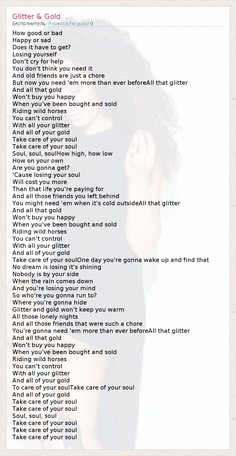 А как ты думаешь, о чем песня "Glitter & Gold" ?