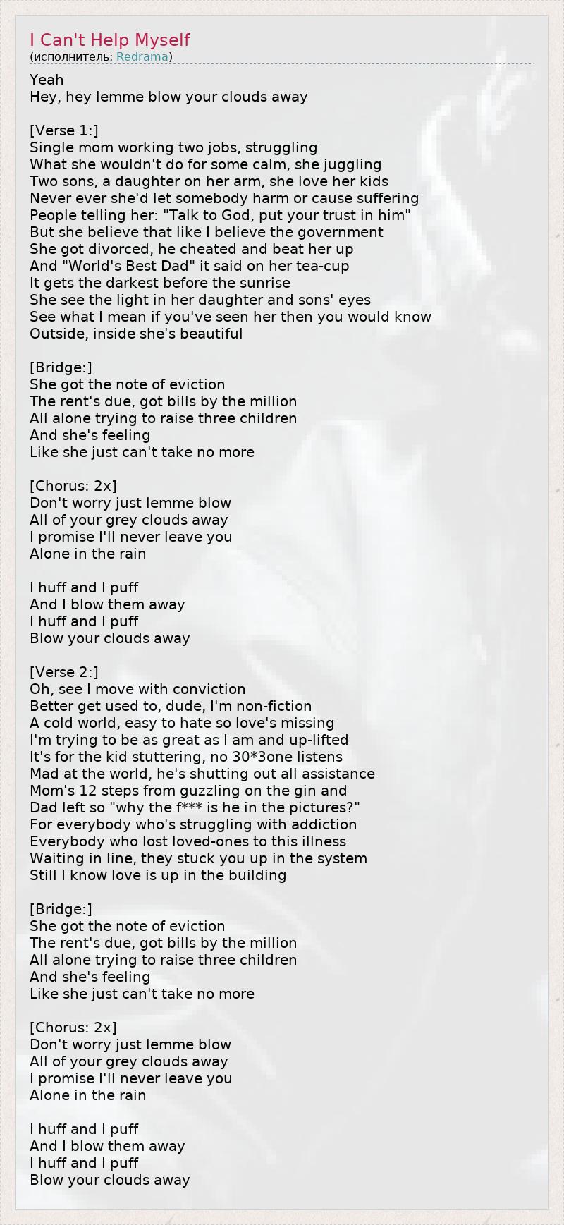 А как ты думаешь, о чем песня "I Can't Help Myself" ?