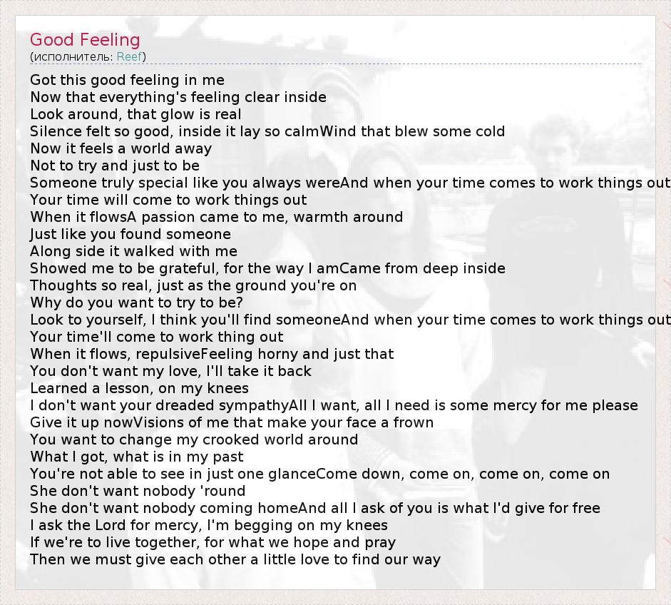 А как ты думаешь, о чем песня "Good Feeling" ?