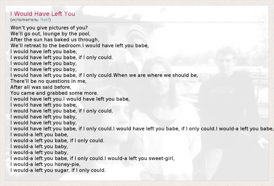I would have left you babe, if I only could.I would have left you babe, if I only could.I would-a left you babe,