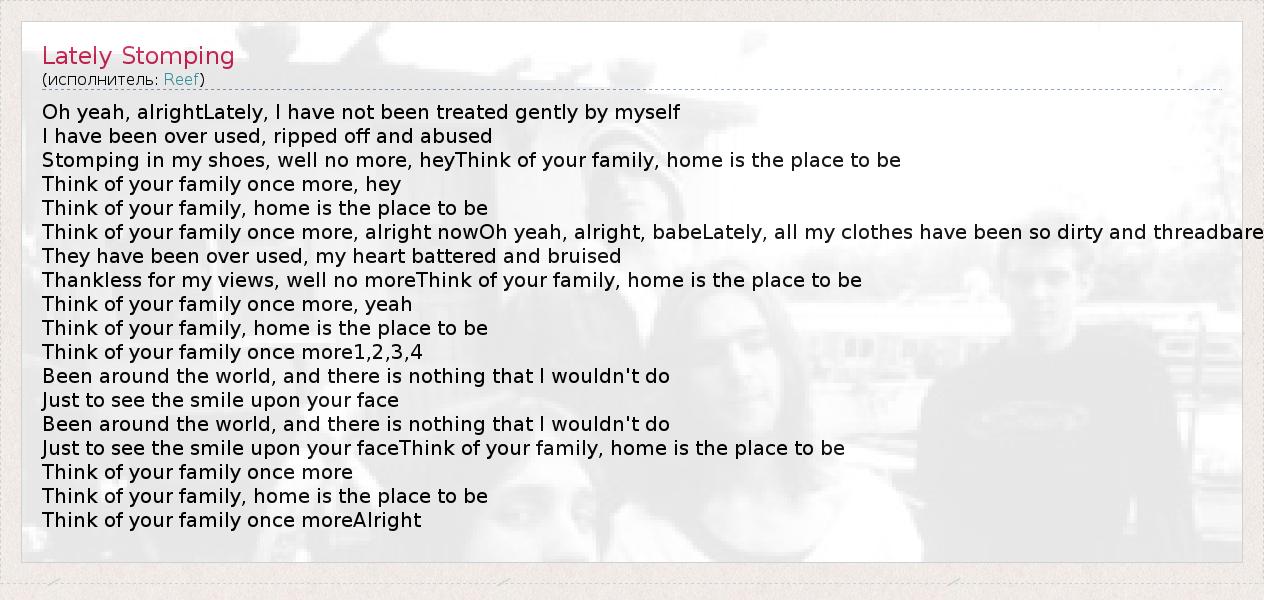 А как ты думаешь, о чем песня "Lately Stomping" ?