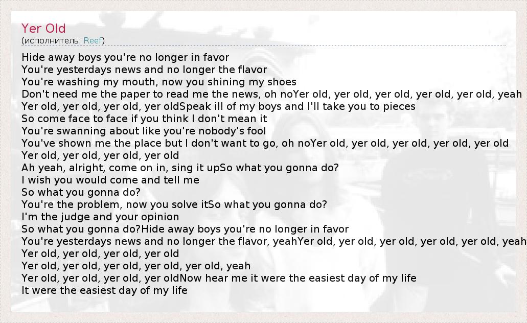 А как ты думаешь, о чем песня "Yer Old" ?