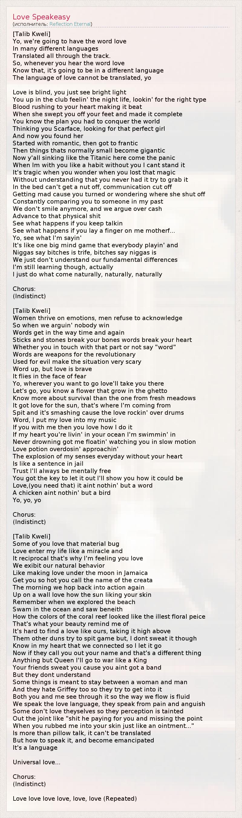 А как ты думаешь, о чем песня "Love Speakeasy" ?