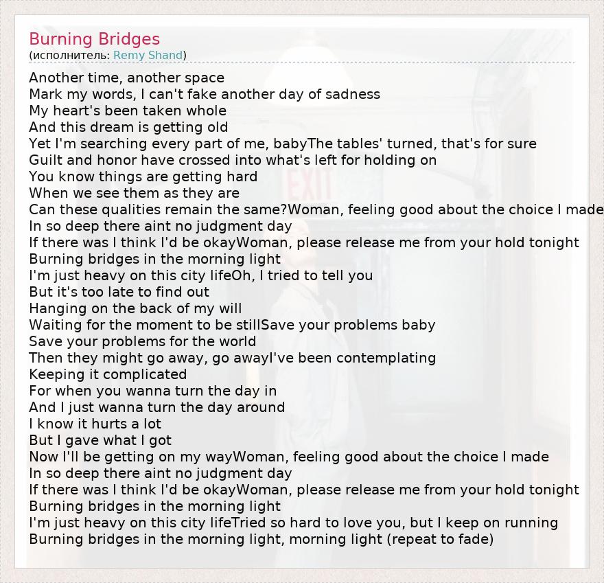 А как ты думаешь, о чем песня "Burning Bridges" ?