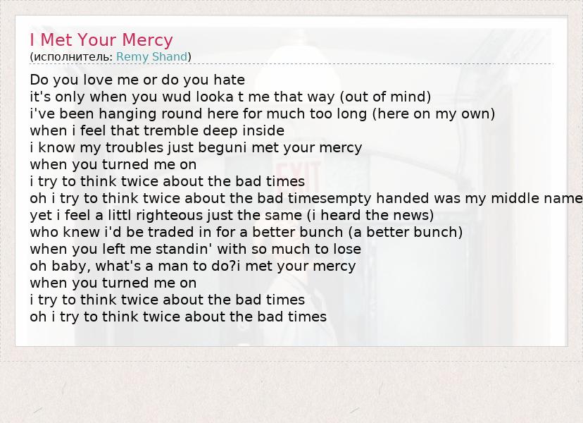 А как ты думаешь, о чем песня "I Met Your Mercy" ?
