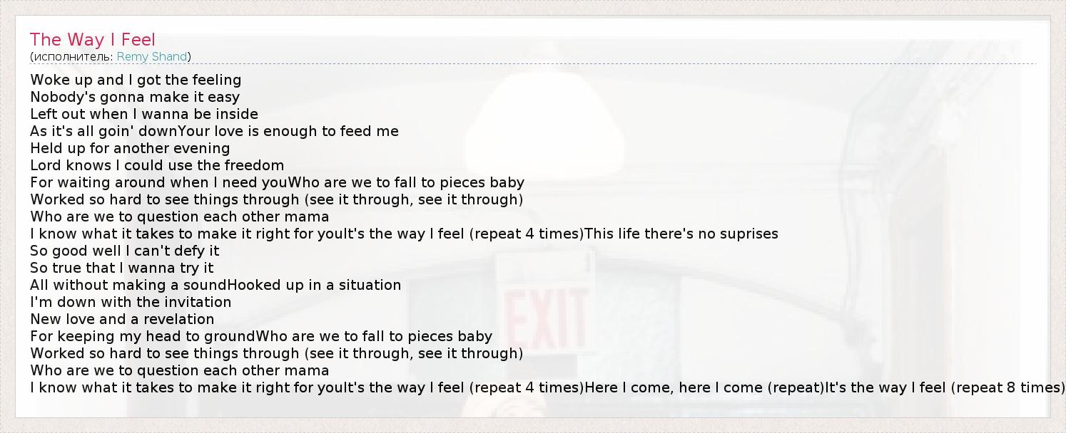 А как ты думаешь, о чем песня "The Way I Feel" ?