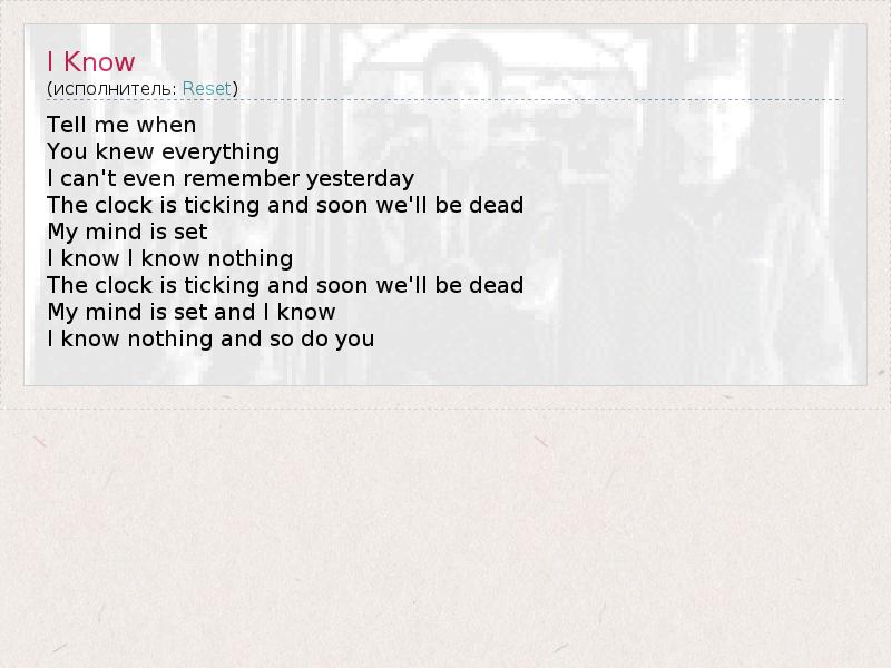 А как ты думаешь, о чем песня "I Know" ?