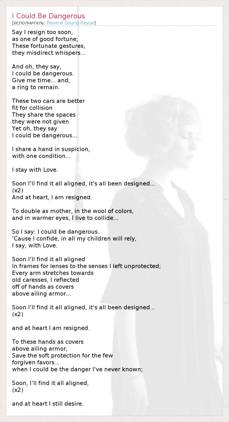 А как ты думаешь, о чем песня "I Could Be Dangerous" ?