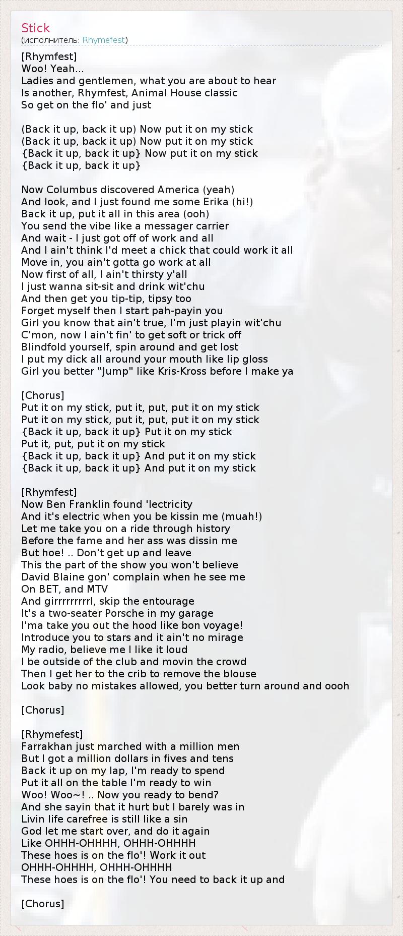 Это интересно:Che Smith (родился 6 июля 1977), также известный под сценическим псевдонимом Rhymefest, является исполнителем хип-хопа. Вырос в одном из районов Чикаго.Из-за беременности своей девушки Rhymefest приходится переехать в Индианаполис. Где он знакомится со своим будущим продюсером Mark Ronson'ом. В феврале 2003 года Rhymefest подписывает... продолжение