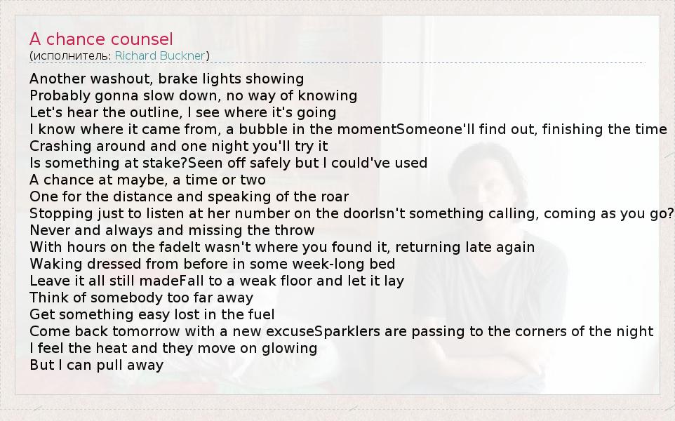 А как ты думаешь, о чем песня "A chance counsel" ?