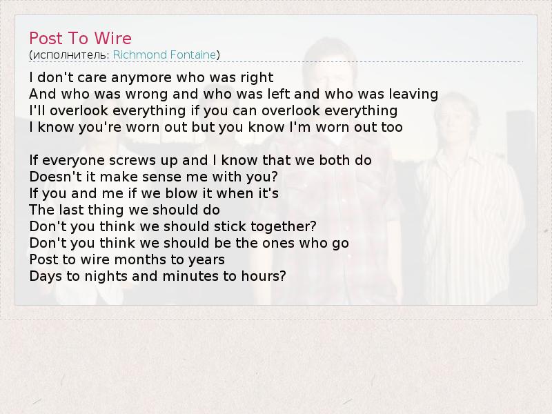 А как ты думаешь, о чем песня "Post To Wire" ?