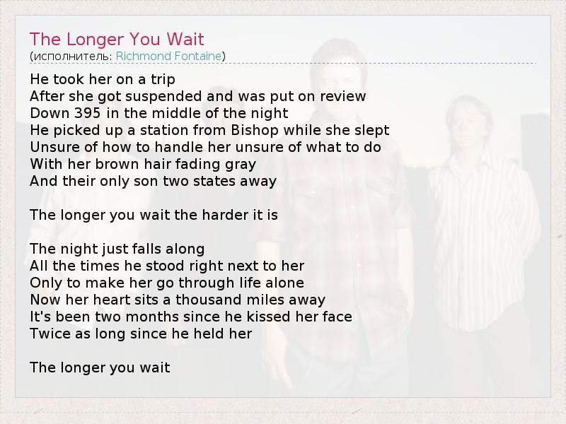 А как ты думаешь, о чем песня "The Longer You Wait" ?