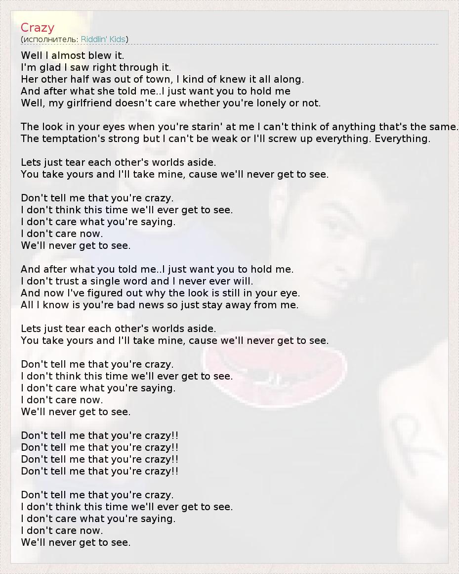 А как ты думаешь, о чем песня "Crazy" ?