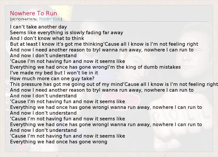 А как ты думаешь, о чем песня "Nowhere To Run" ?