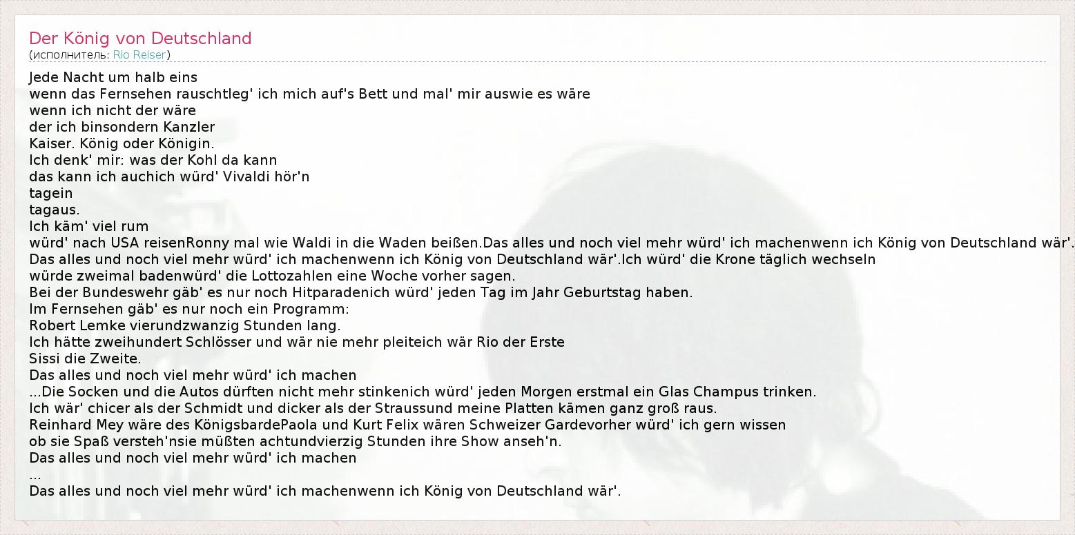 ГлавнаяИсполнителиRio ReiserDer König von Deutschland