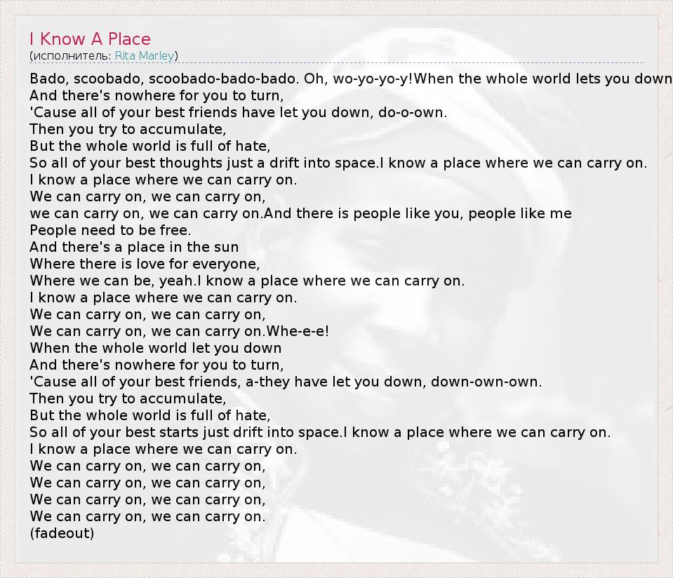 А как ты думаешь, о чем песня "I Know A Place" ?