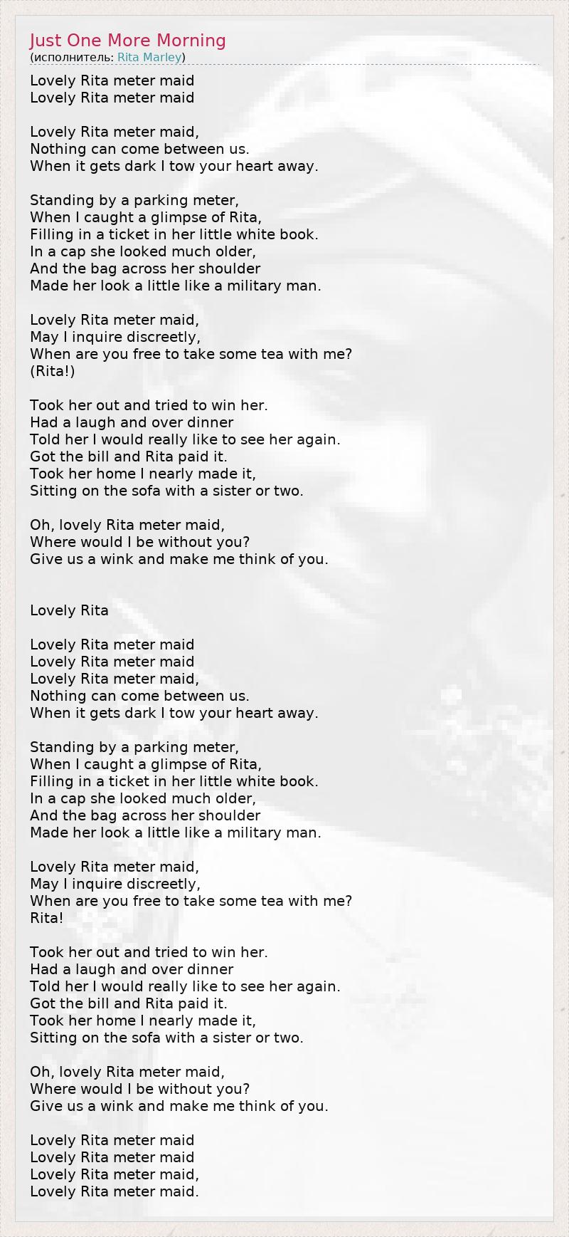 О, прекрасная Рита, работающая контролером на автостоянке,