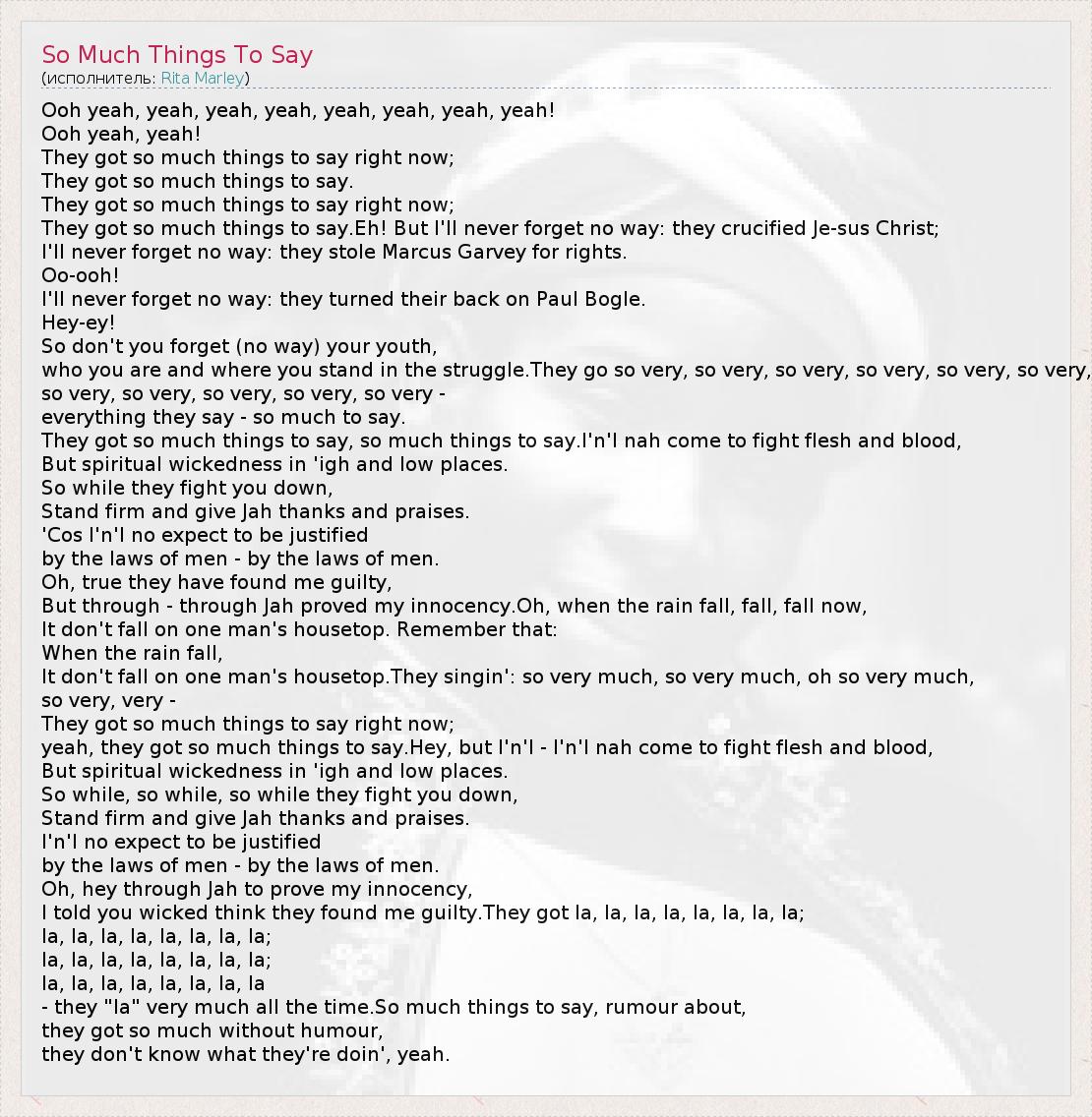 А как ты думаешь, о чем песня "So Much Things To Say" ?