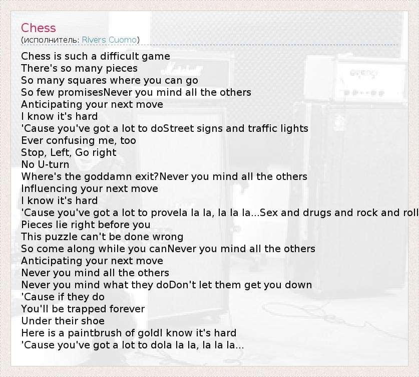 Это интересно:Риверс Куомо (13 июня 1970, Манхэттен) – номинированный на Грэмми музыкант, более известный как вокалист, гитарист и автор песен рок-группы Weezer . Также работает сольно: свой дебютный сольный альбом «Alone: The Home Recordings of Rivers Cuomo» был выпущен в декабре 2007 года, который включал в себя домашние демо песен, написанных с 1992 по 2007 год. Помимо электро и акустической гитары Куомо умеет... продолжение