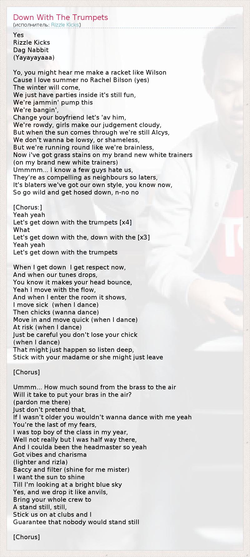 А как ты думаешь, о чем песня "Down With The Trumpets" ?