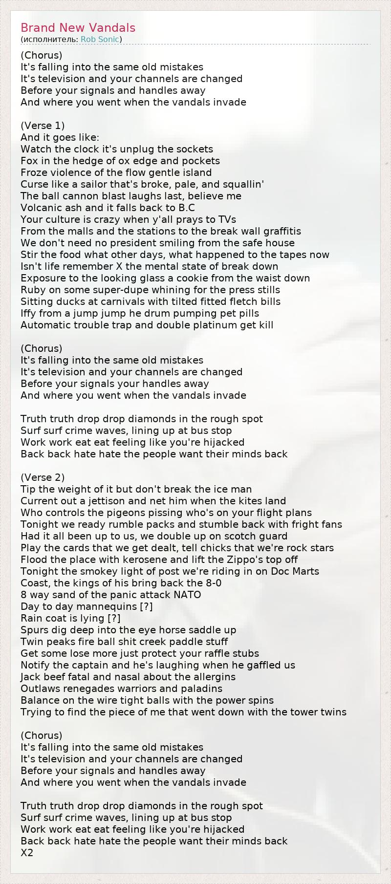 А как ты думаешь, о чем песня "Brand New Vandals" ?