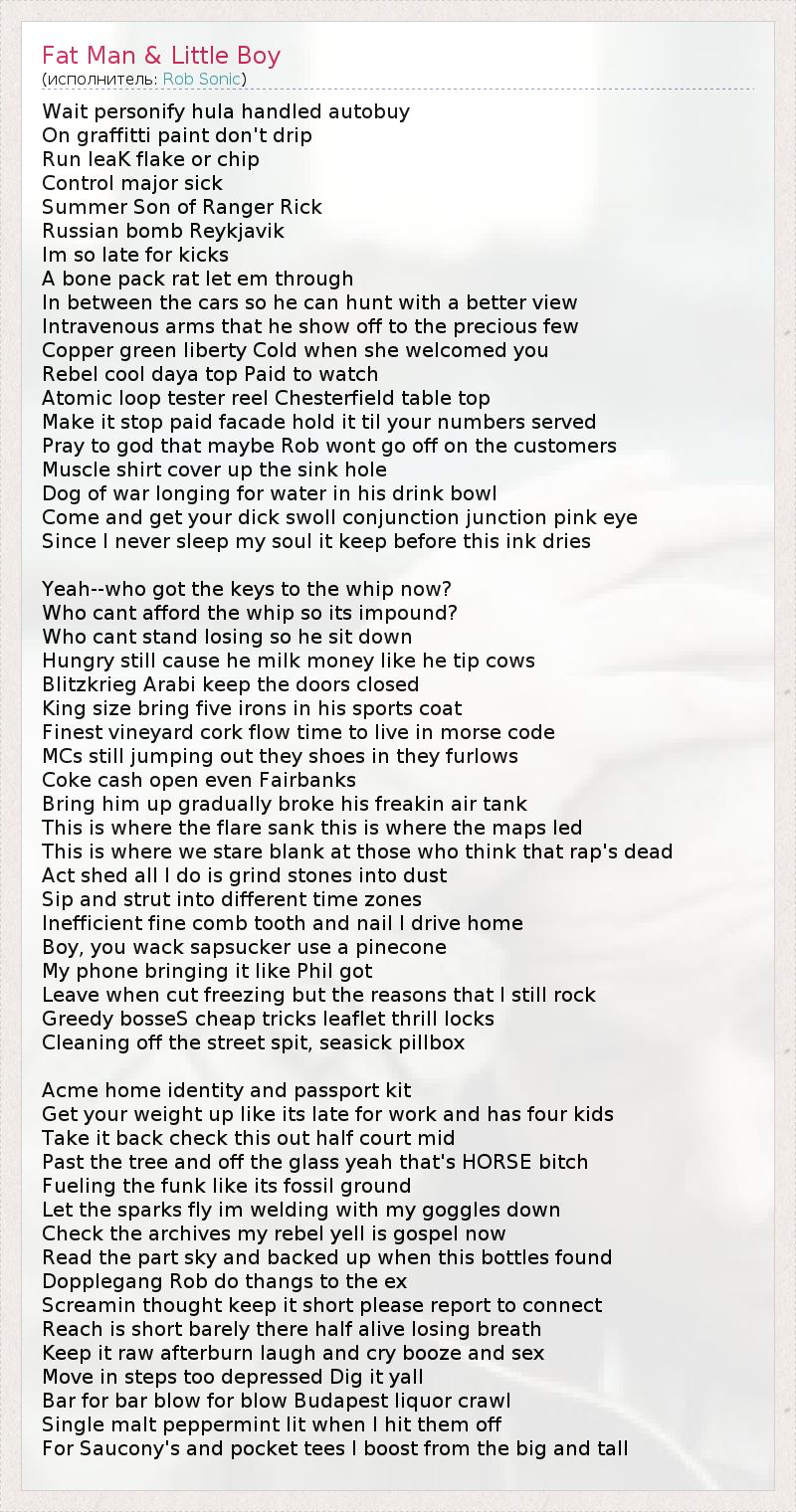 А как ты думаешь, о чем песня "Fat Man & Little Boy" ?