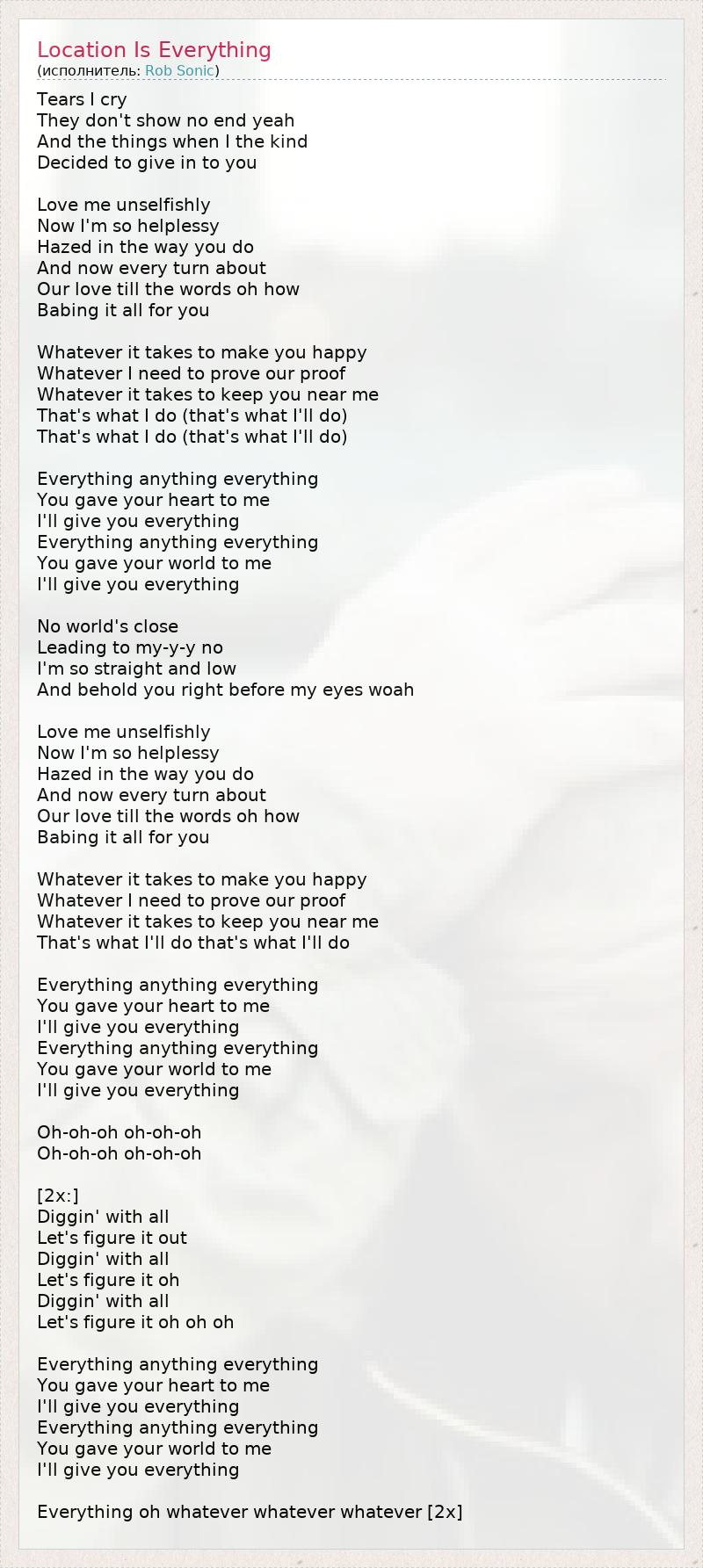 А как ты думаешь, о чем песня "Location Is Everything" ?