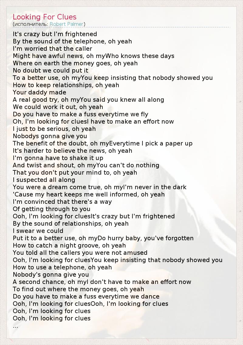 А как ты думаешь, о чем песня "Looking For Clues" ?