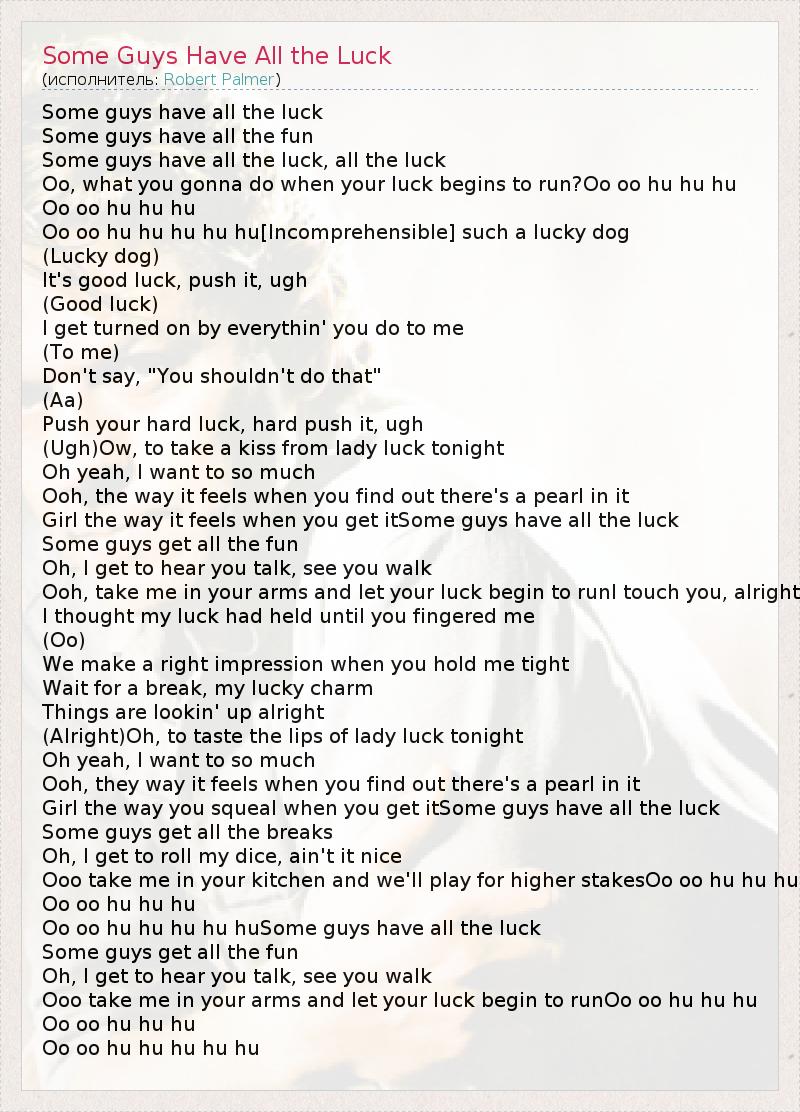 А как ты думаешь, о чем песня "Some Guys Have All the Luck" ?