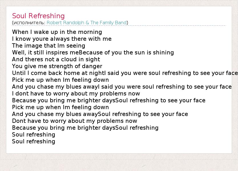 А как ты думаешь, о чем песня "Soul Refreshing" ?