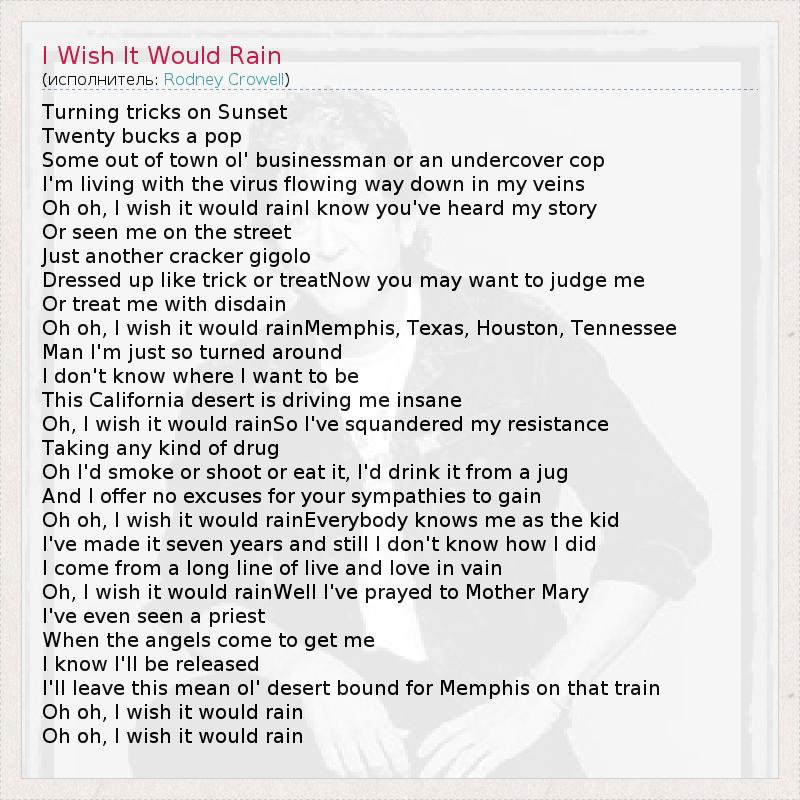 А как ты думаешь, о чем песня "I Wish It Would Rain" ?