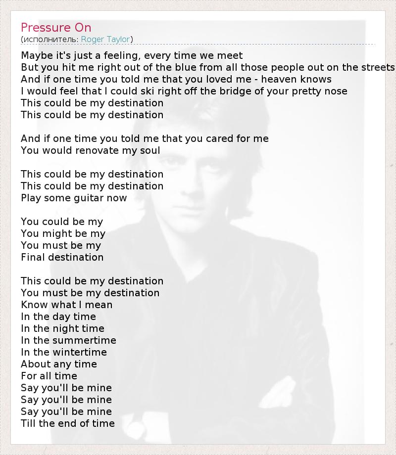 А как ты думаешь, о чем песня "Pressure On" ?