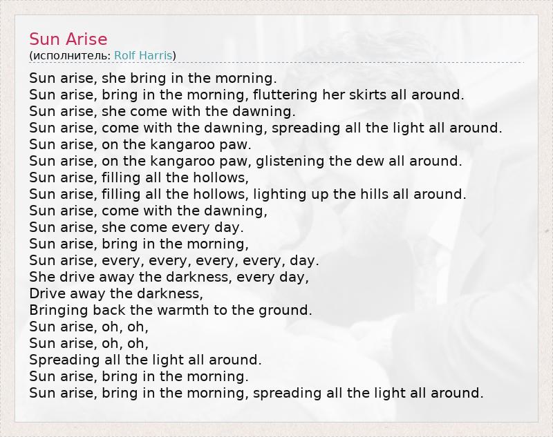 А как ты думаешь, о чем песня "Sun Arise" ?