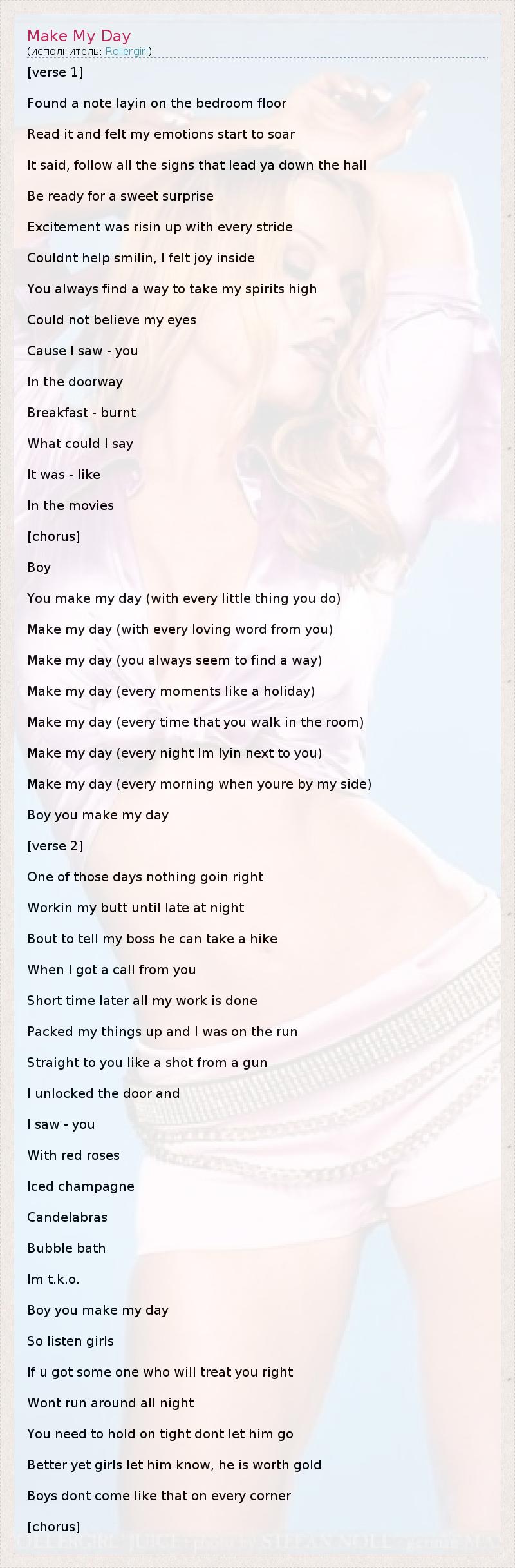 А как ты думаешь, о чем песня "Make My Day" ?