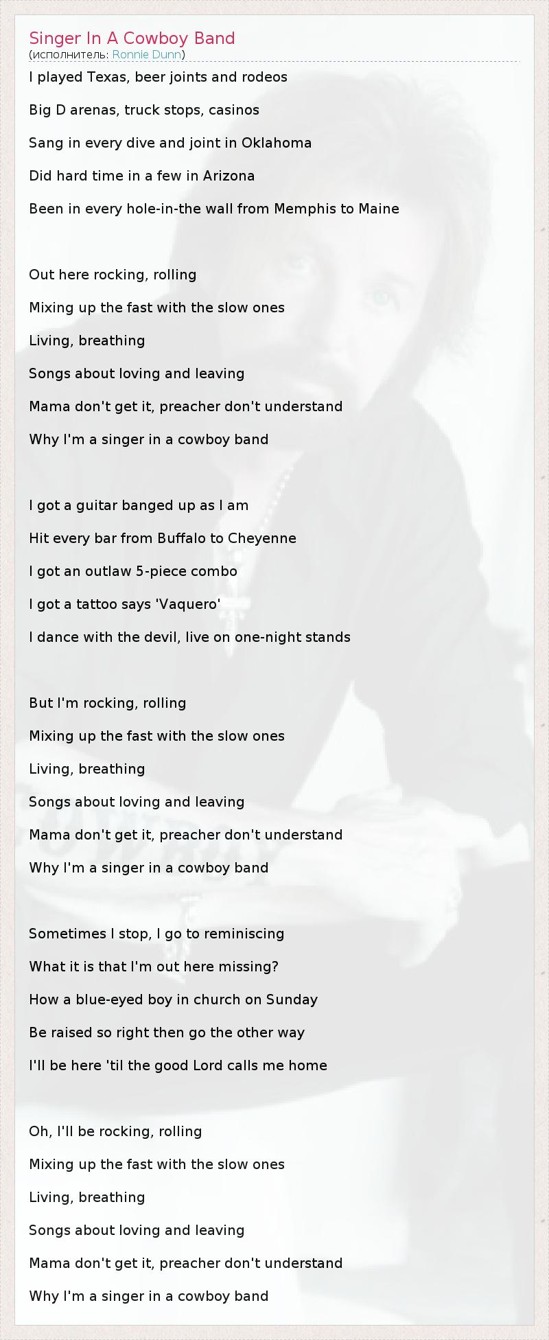 ГлавнаяИсполнителиRonnie DunnSinger In A Cowboy Band