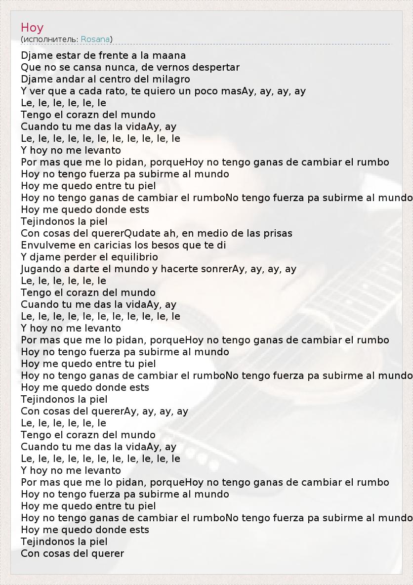Hoy no tengo ganas de cambiar el rumboNo tengo fuerza pa subirme al mundo