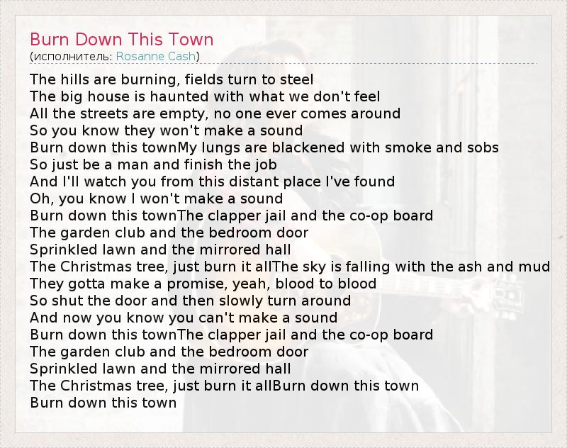 А как ты думаешь, о чем песня "Burn Down This Town" ?