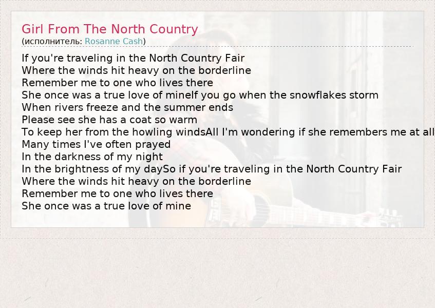 А как ты думаешь, о чем песня "Girl From The North Country" ?