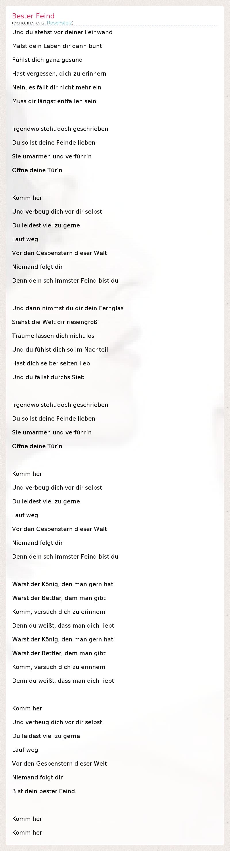 А как ты думаешь, о чем песня "Bester Feind" ?