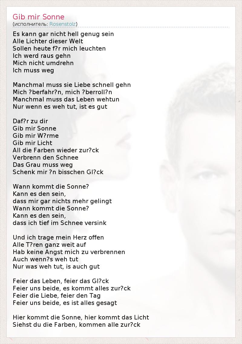 А как ты думаешь, о чем песня "Gib mir Sonne" ?