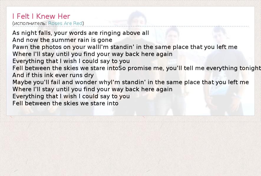 А как ты думаешь, о чем песня "I Felt I Knew Her" ?