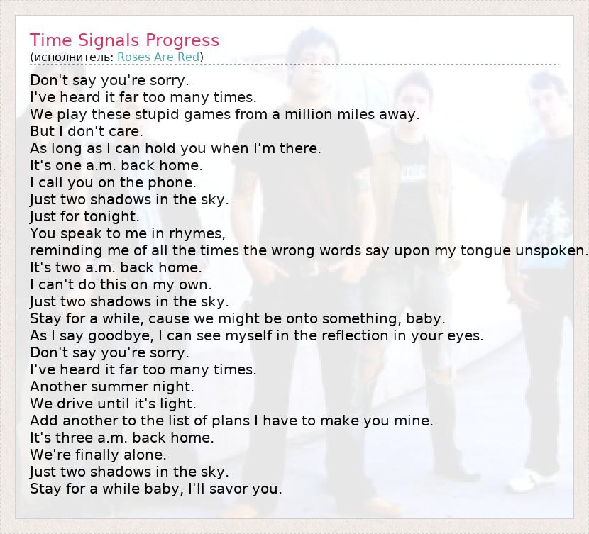 А как ты думаешь, о чем песня "Time Signals Progress" ?