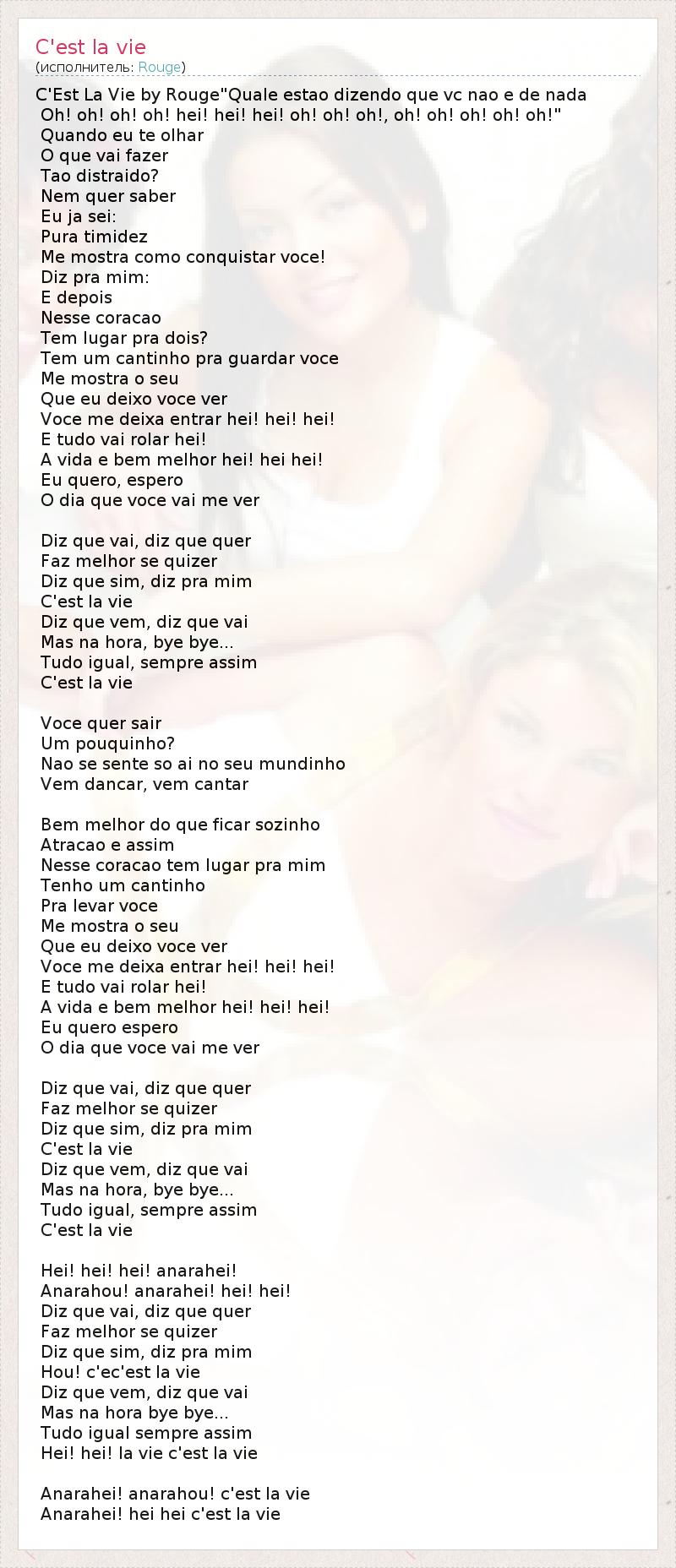 C'Est La Vie by Rouge"Quale estao dizendo que vc nao e de nada
