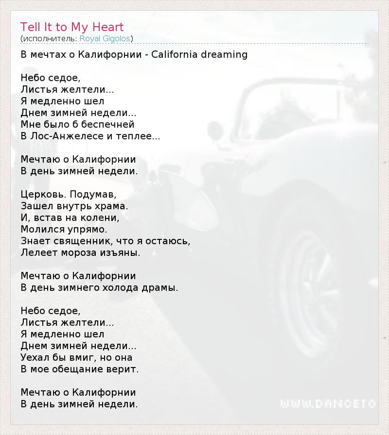А как ты думаешь, о чем песня "Tell It to My Heart" ?