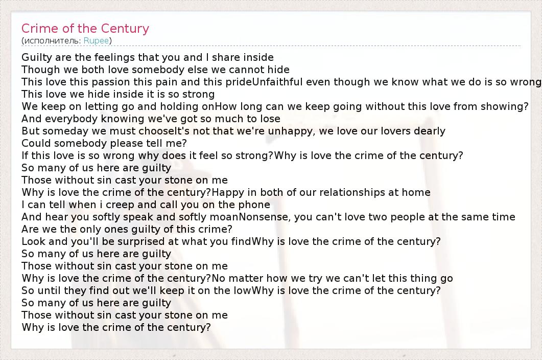А как ты думаешь, о чем песня "Crime of the Century" ?