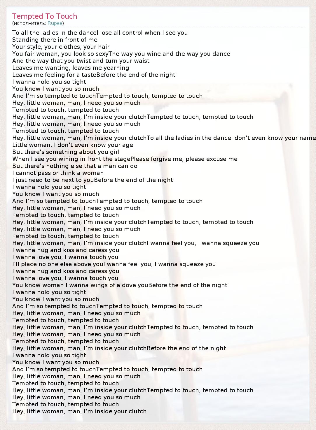 А как ты думаешь, о чем песня "Tempted To Touch" ?